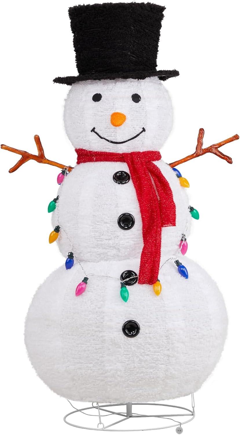 【120 LED Lights】Light up your holiday with our collapsible snowman Christmas decoration. The foldable snowman set is prelit with 120 white LED lights which are cool to the touch. The beautiful and secure design brings you a happy and warm holiday.