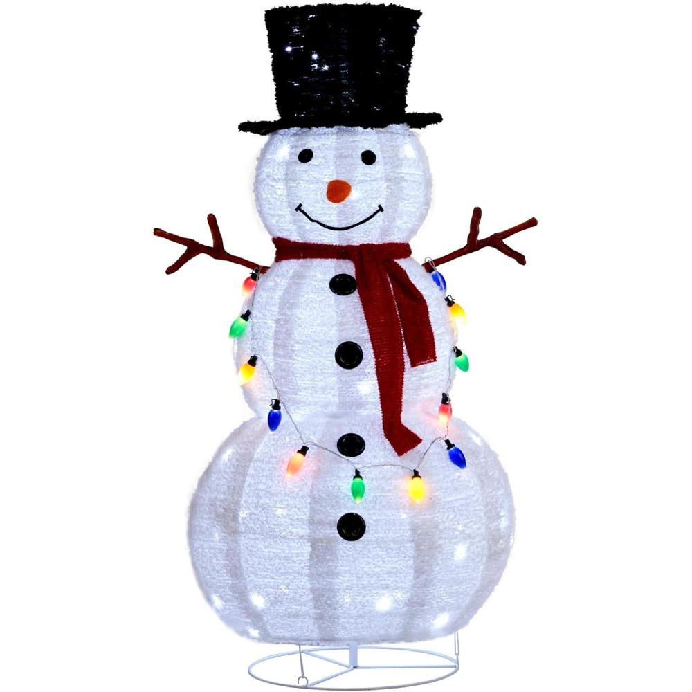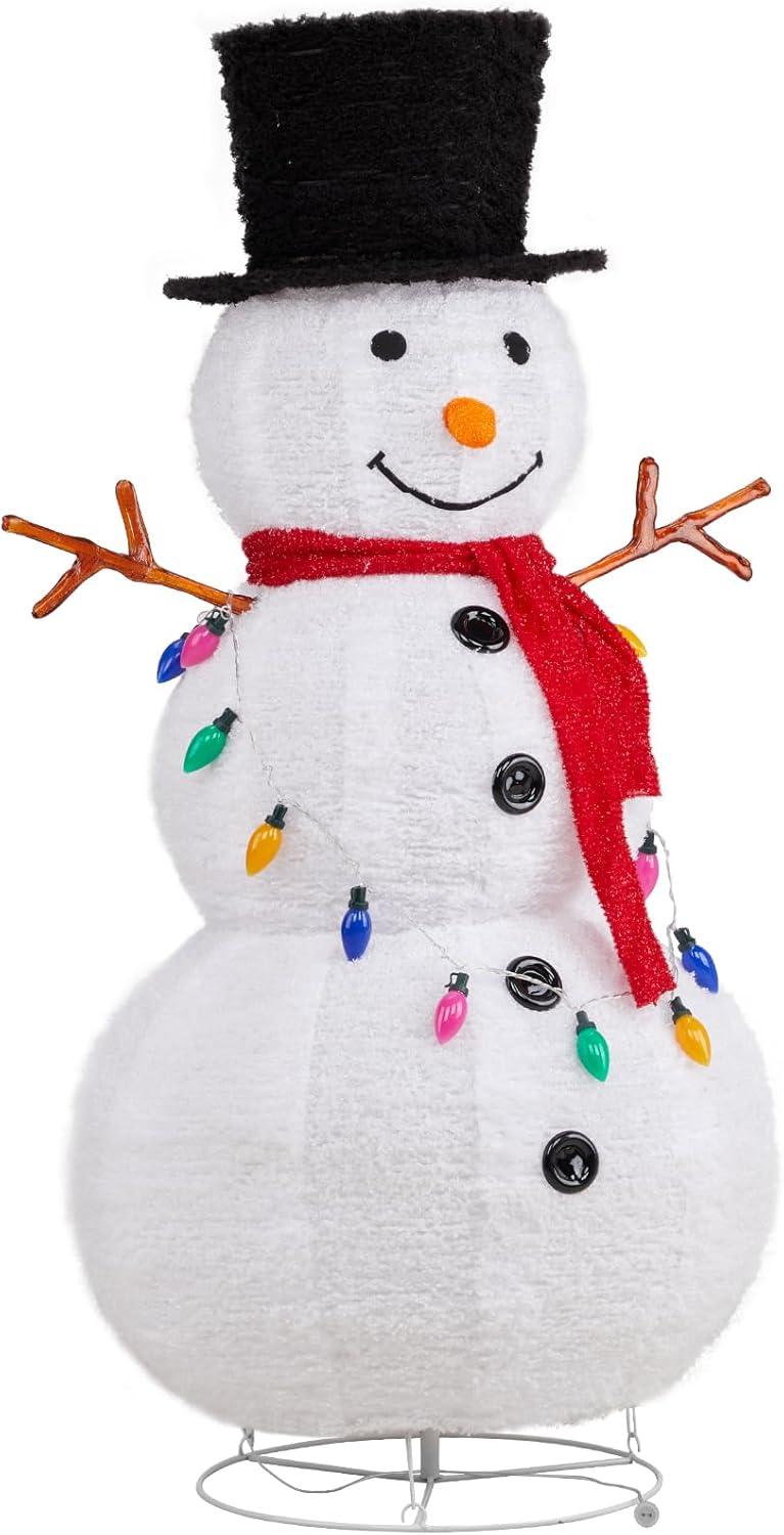 imageVINGLI 4FT Lighted Snowman Christmas Decorations w 120 LED Lights Auto Take onOff Hat Popup Snowman Ornaments with Ground Stakes for Outside Holiday Indoor Decor4FT Plush Snowman