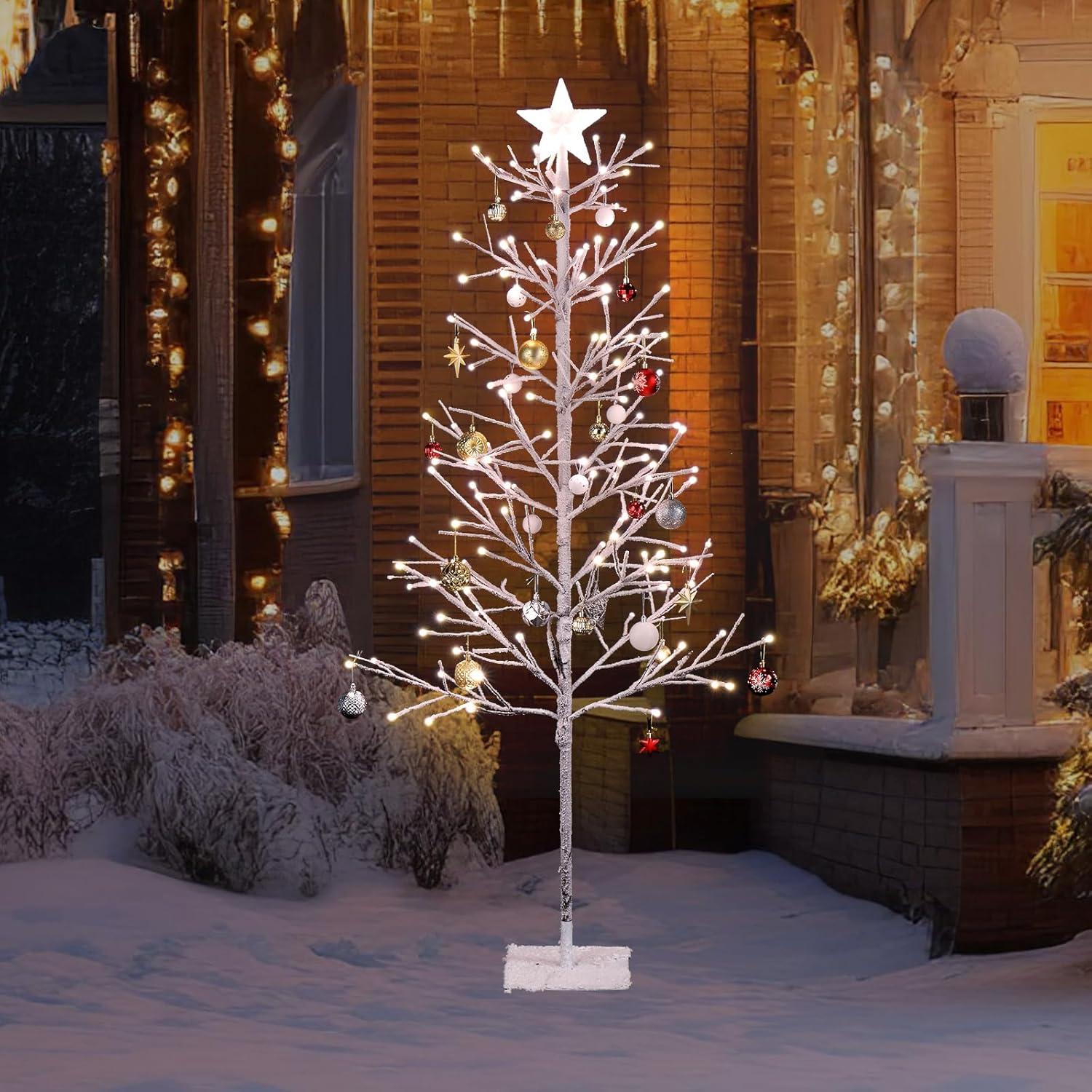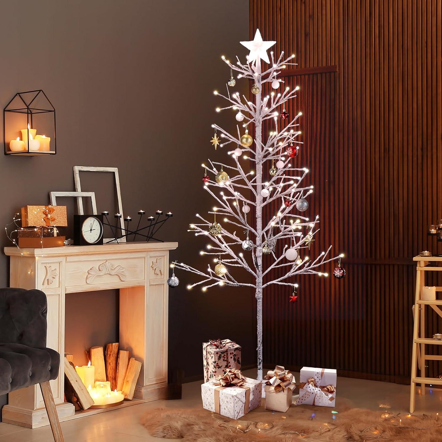 【WARM LED LIGHTS】- The Christmas Tree pre-lit with 250 LED warm white lights among the branches create a glowing nighttime display. No need to add extra lights. Placing it on your porch or garden, or even indoors, will surprise your vision and make the Christmas atmosphere even more intense.