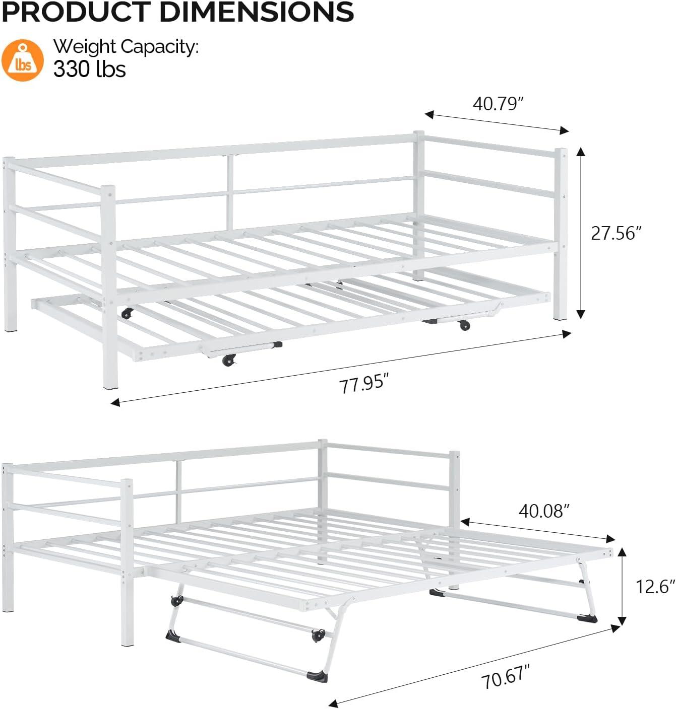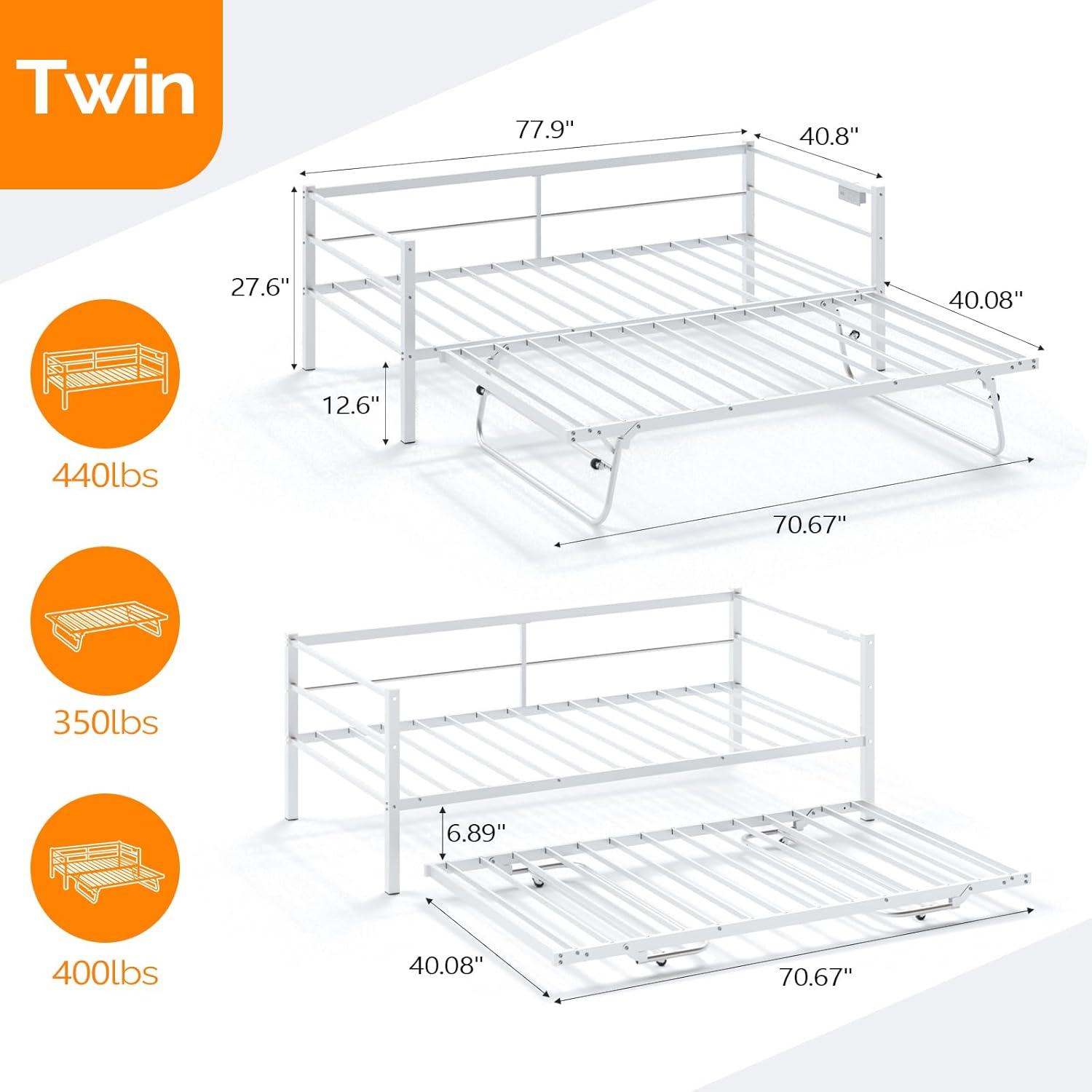 【Built for Real Life, Designed to Last】 Whether it's your weekly game night with three friends or a cozy nap for two, the sofa daybed frame has reinforced steel slats offering unwavering support. Confidently relax knowing each side of the metal bed frame holds up to 330 lbs, making this the sturdy, long-lasting, and space-efficient centerpiece your home deserves.