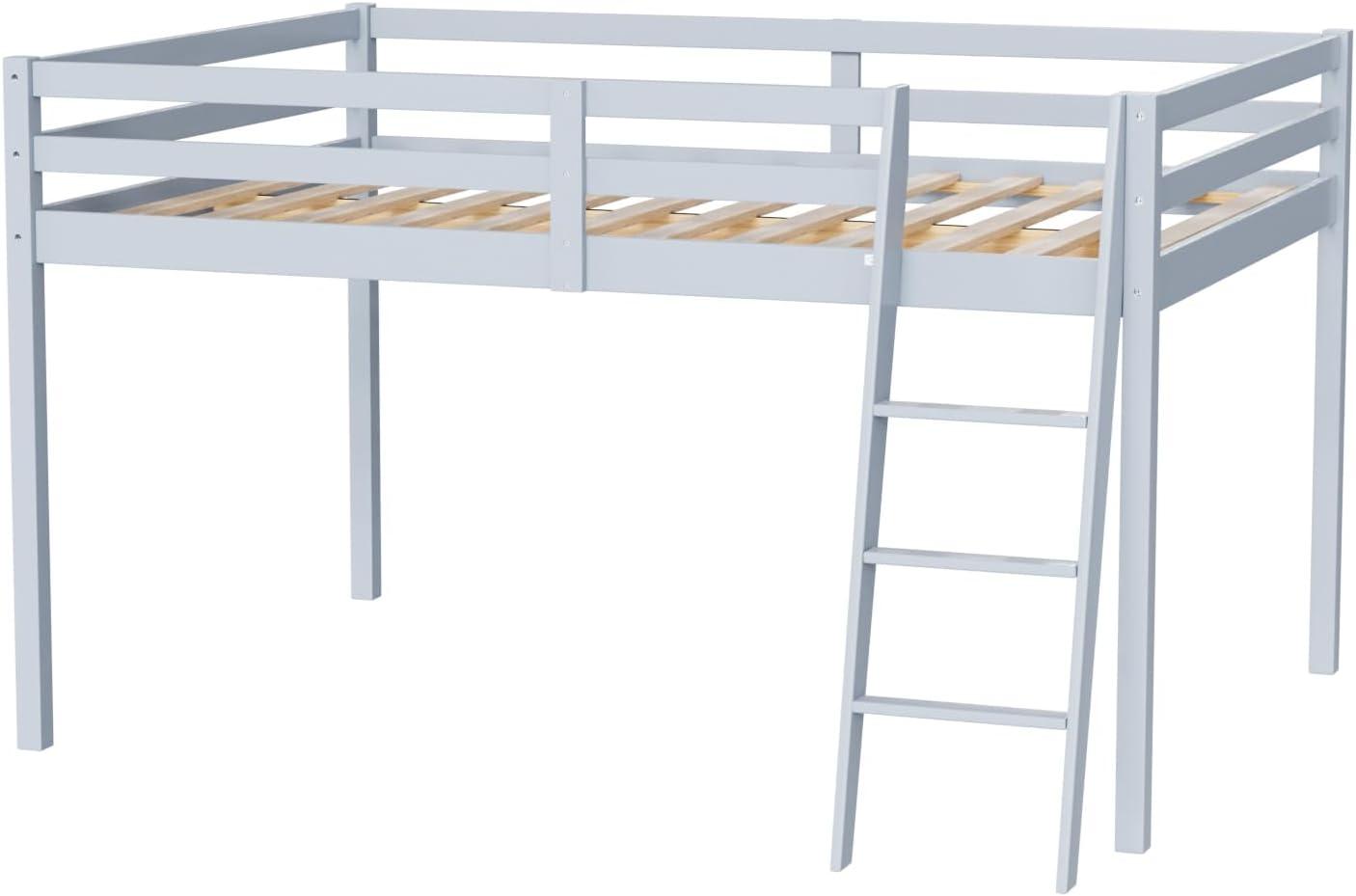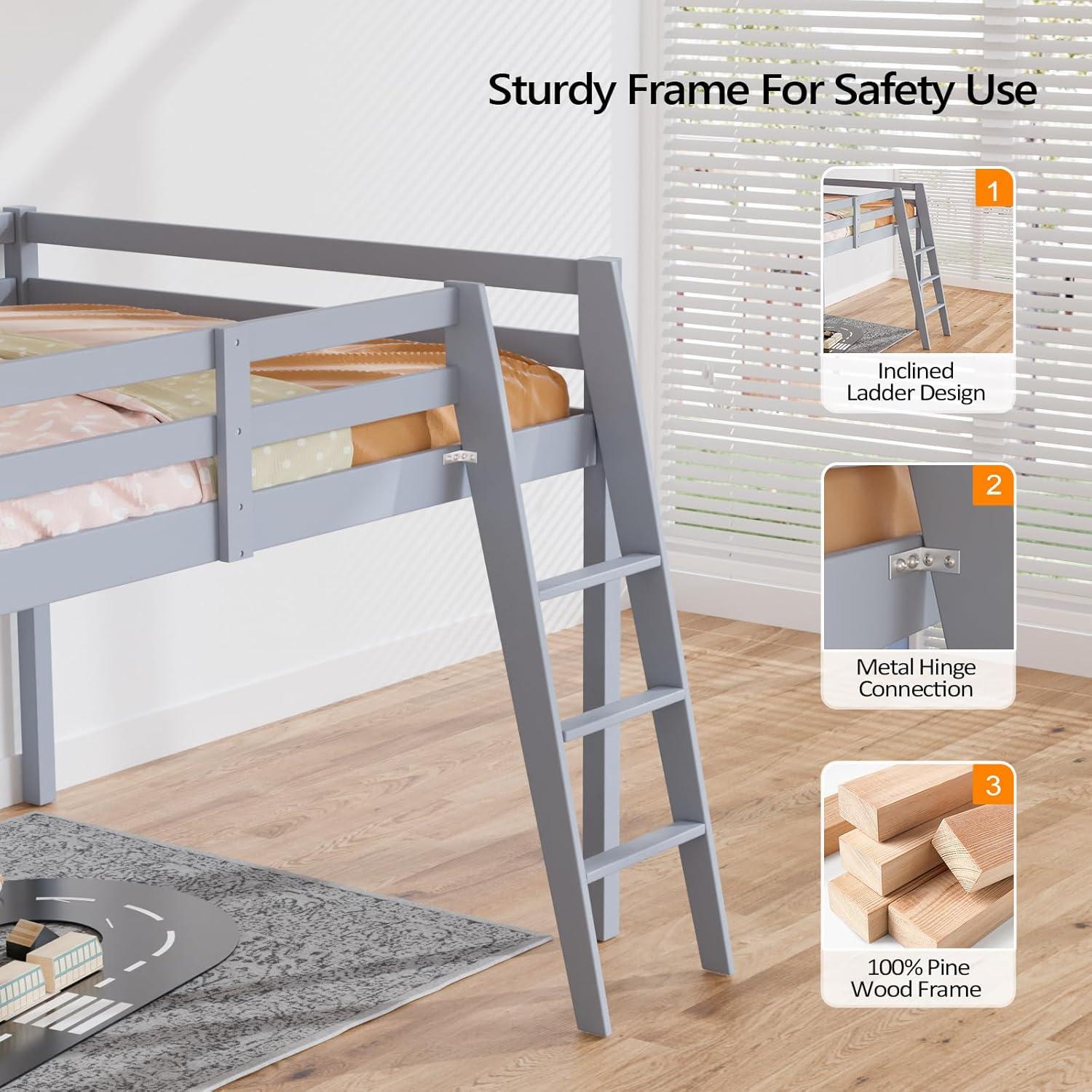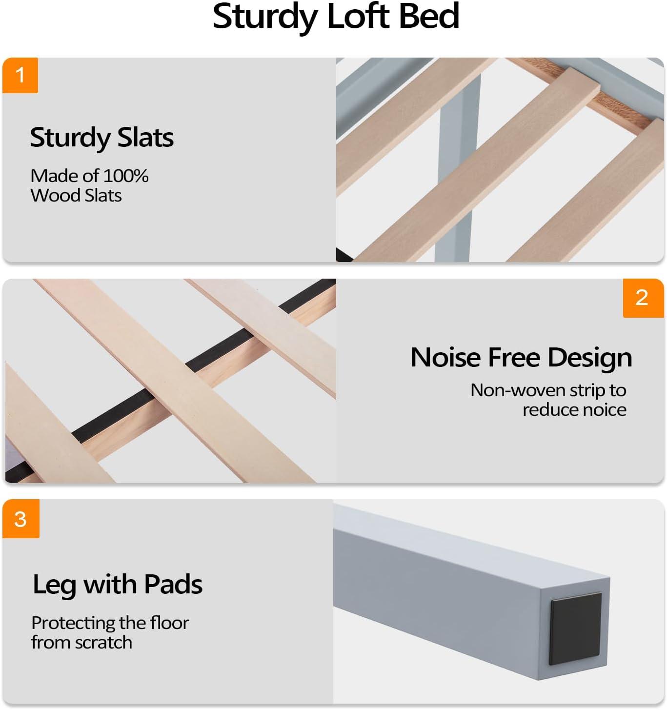 【Safety Loft Bed】The upper bed is equipped with nearly 15 inches heightened guardrails, ensuring security throughout the night, preventing accidental falls. To better adapt to your room, we have designed a Anti-Slip ladder as a structure that can be installed to ensure easy and convenient access to the upper bunk safety.