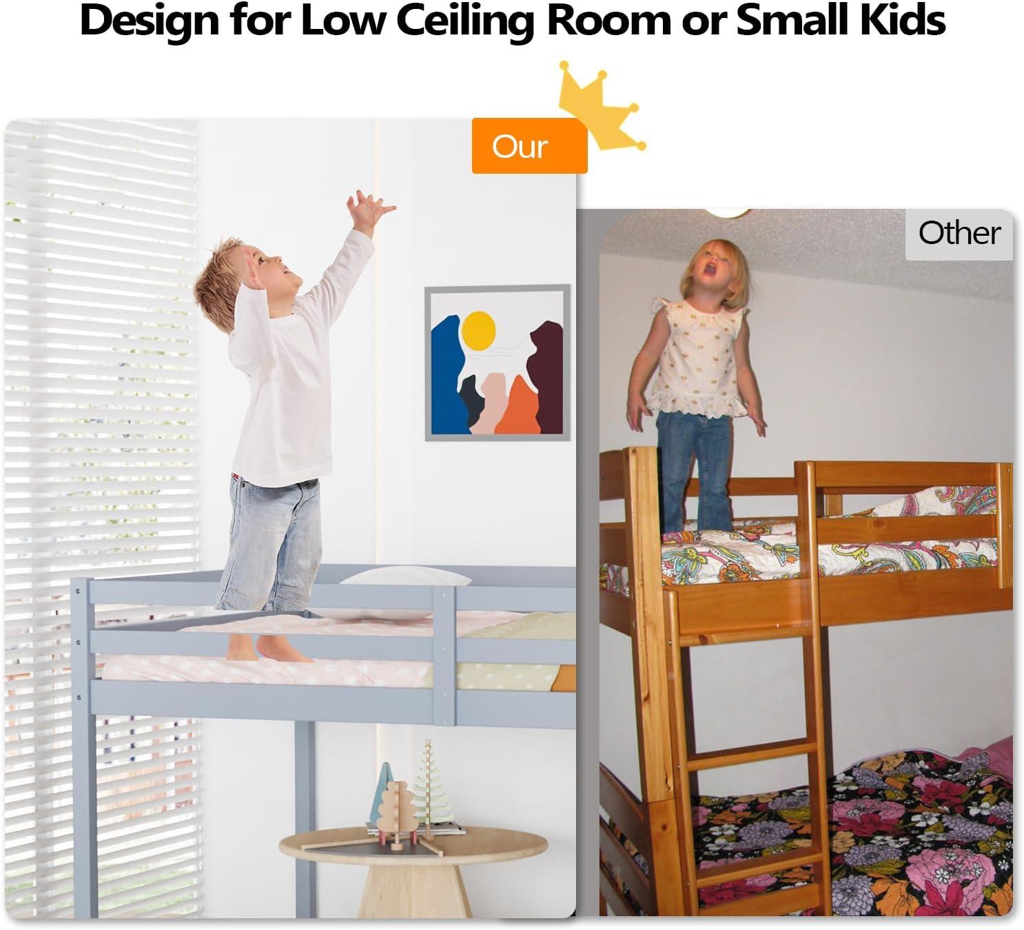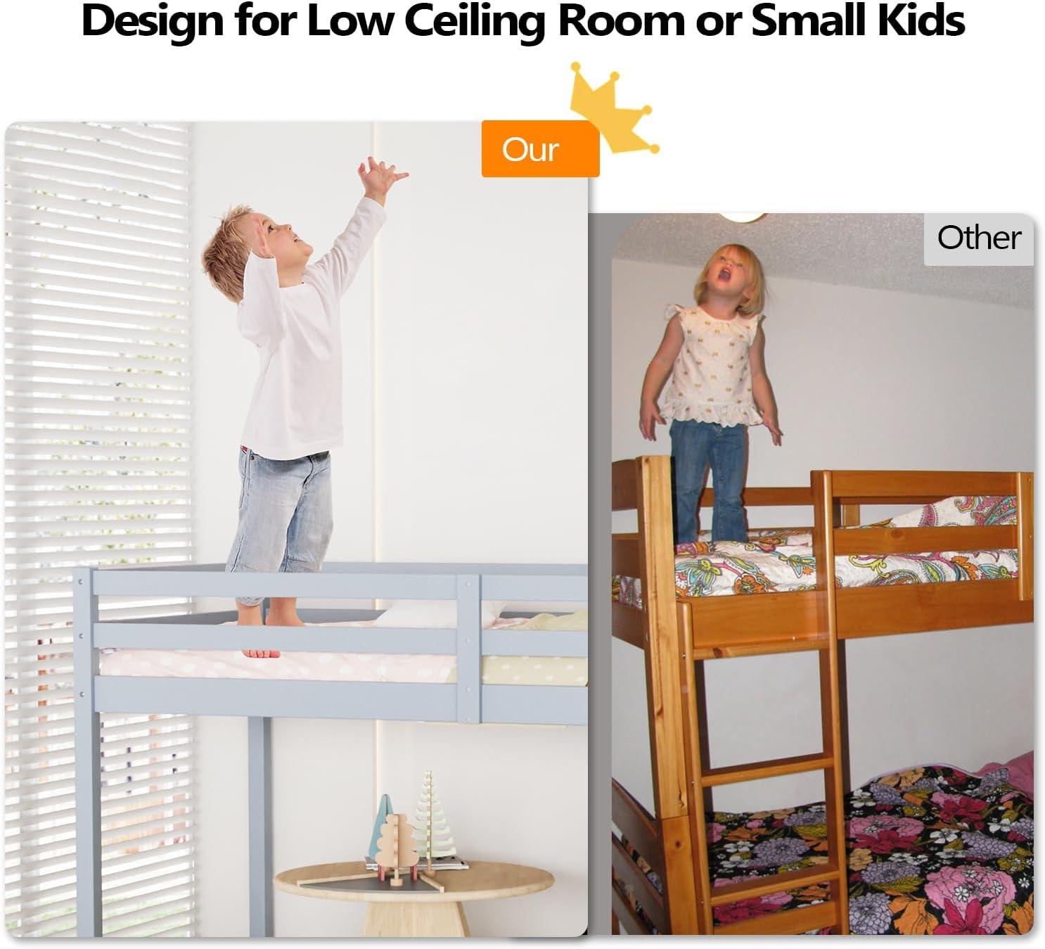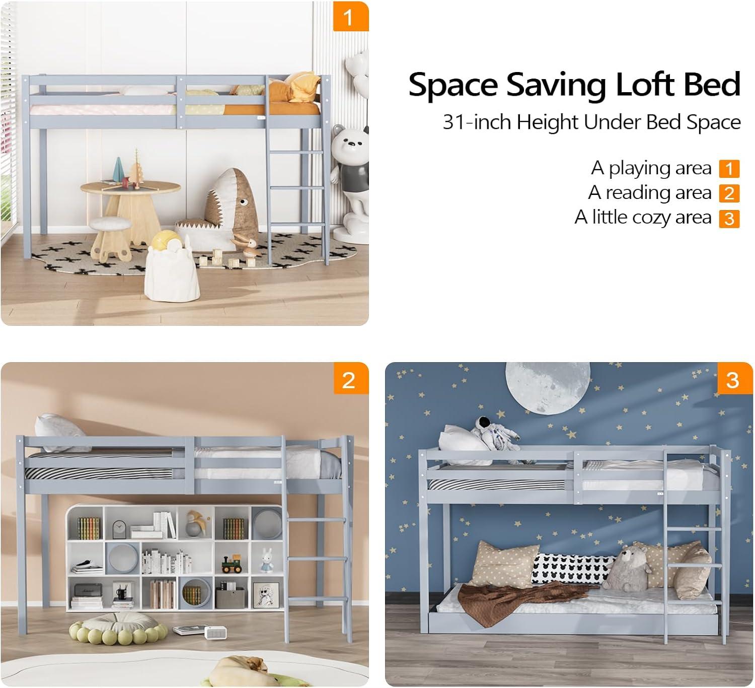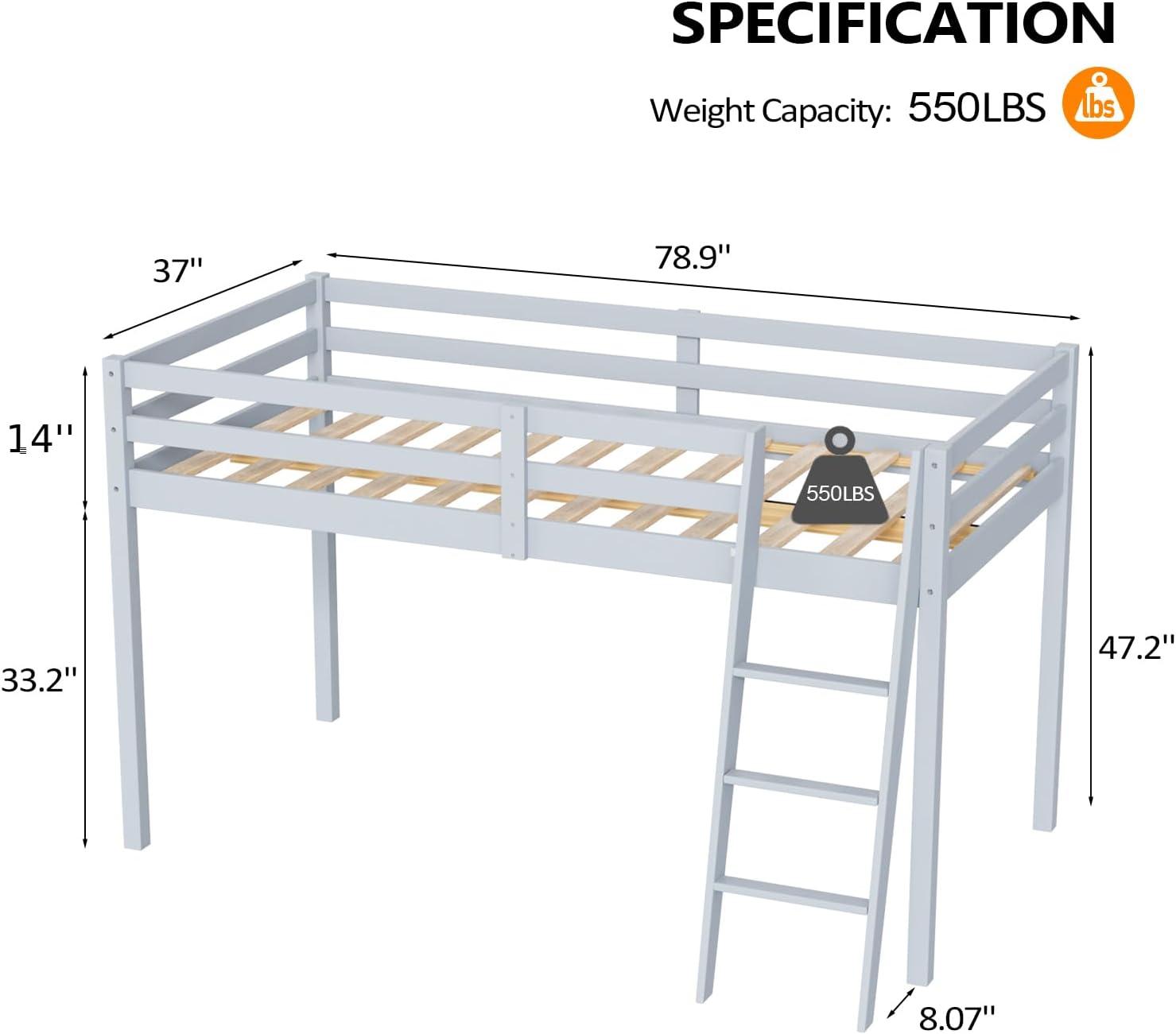【Safety Loft Bed】The upper bed is equipped with nearly 15 inches heightened guardrails, ensuring security throughout the night, preventing accidental falls. To better adapt to your room, we have designed a Anti-Slip ladder as a structure that can be installed to ensure easy and convenient access to the upper bunk safety.