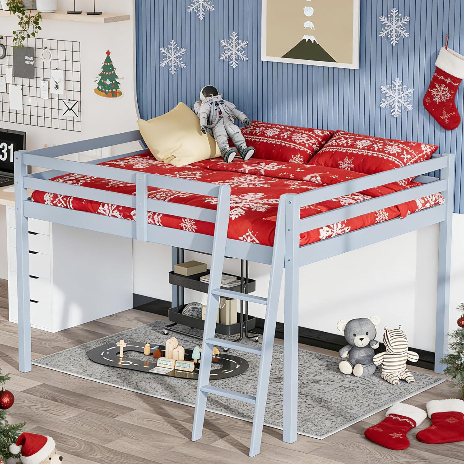 【Space-Saving】The loft bed full size design effectively utilizes vertical space and creates extra floor space underneath. The 57.09″ X 76.77″ friendly space is perfect for putting a desk, shelf, or other items you need, for storage solution or even a cozy reading corner.