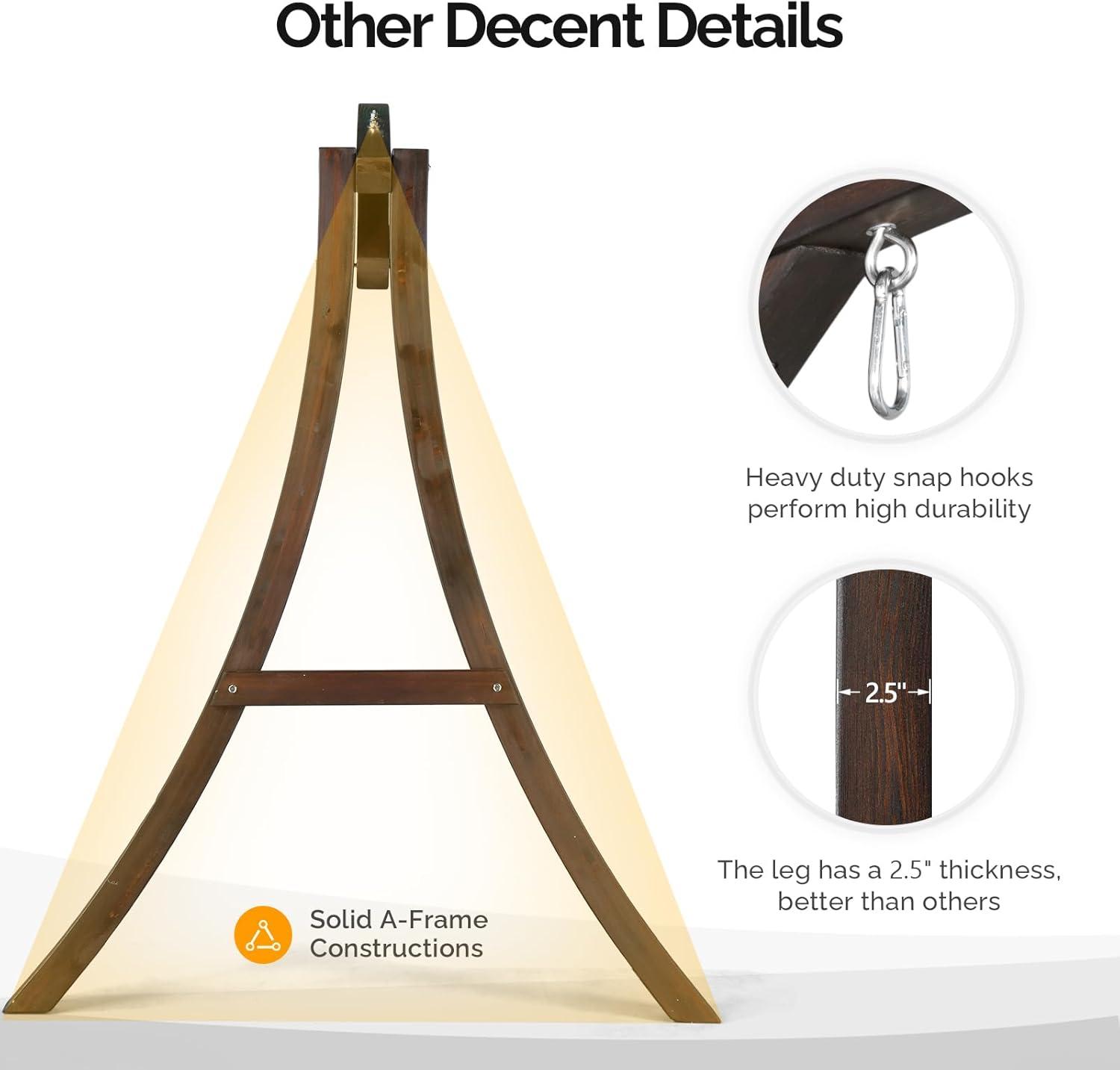 Stable Structure – The A-Frame design ensures overall stability and support, which makes the swing stand stronger, suitable for most suspensions. The woods on both sides of the top for support form sturdy triangular structures, ensure a strong weight capacity of up to 1000 LBS