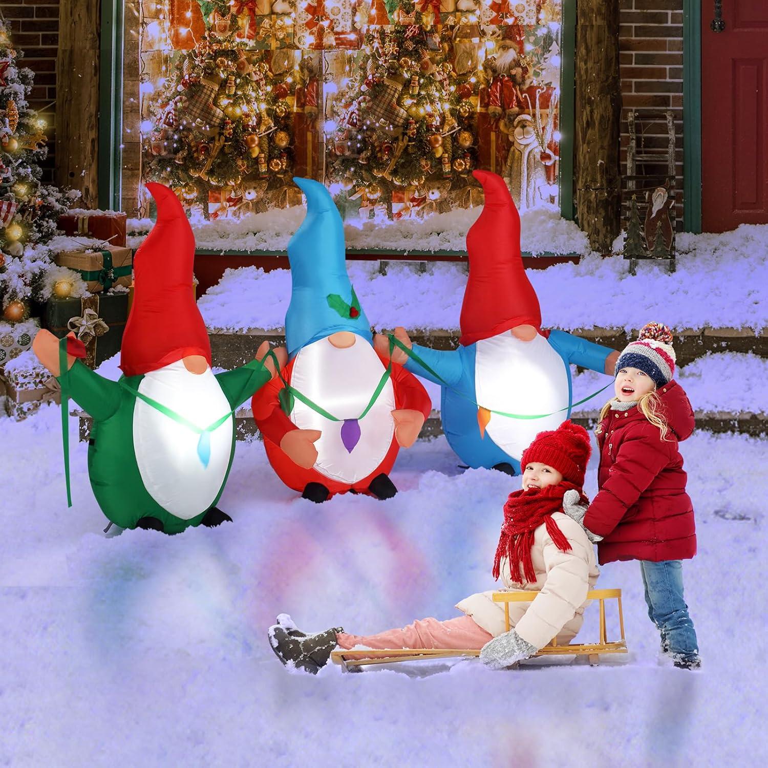 【Easy Assembly and Storage】Simply unfold the Christmas inflatable, close the zipper on the bottom, and then plug it into power outlet. With built-in large electric blower fan, the lighted Christmas inflatables can be simply assembled in 5 mins. It also can be fast deflated by opening the zipper on the bottom and stored in garages or cabinets for space saving.