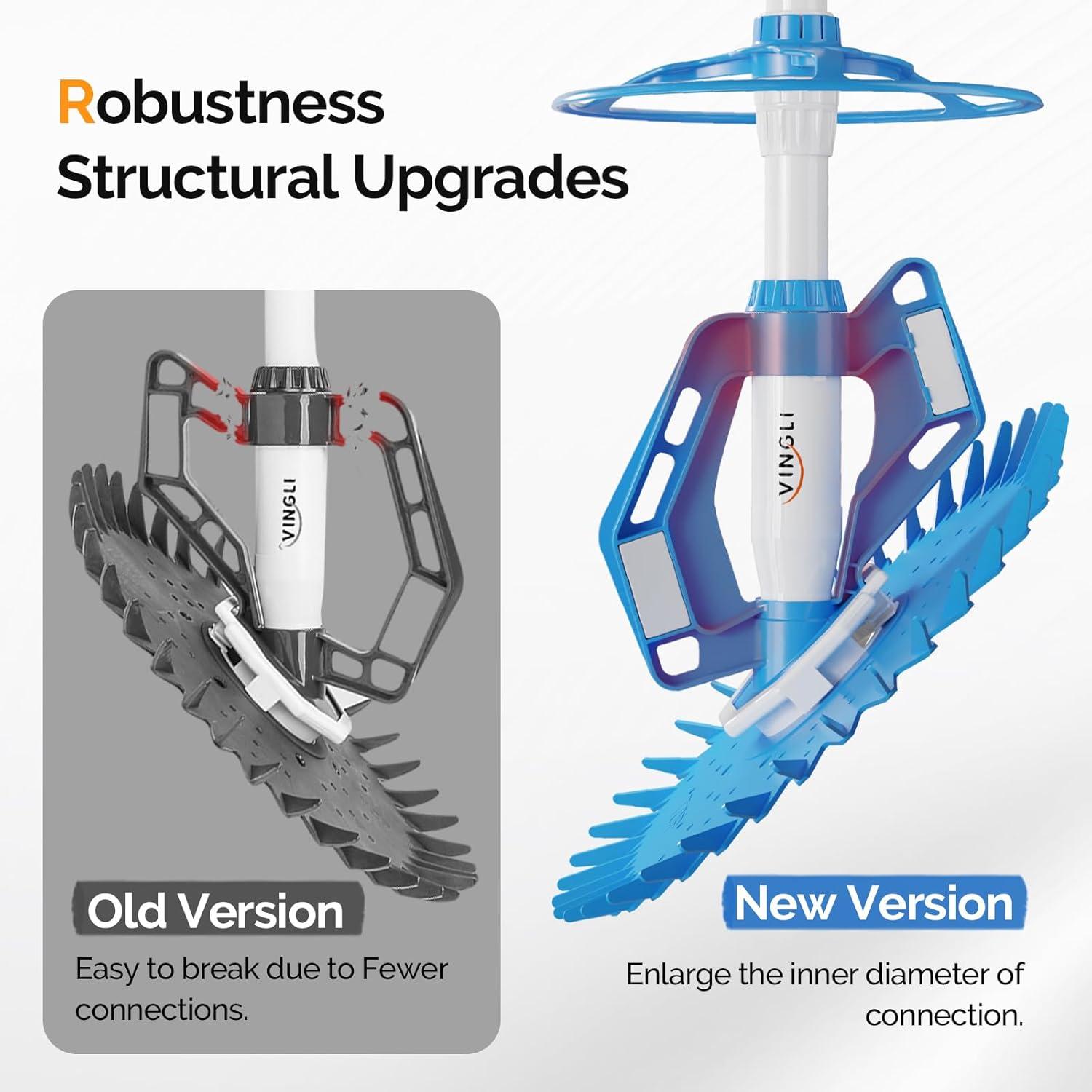 Easy to Set Up and Efficient Cleanning and Super Quietly. This pool vacuum cleaner isvery easy to assemble and install and allows you to clean your pool effortlessly andquietly, unlike some other automatic pool cleaners that make an annoying hammernoise. Low noise, create a quiet operate environment.