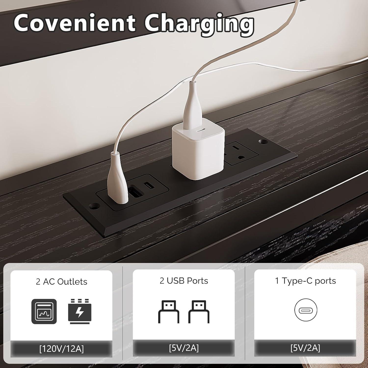 【Convenient Charging Station】 This queen metal bed frame comes with a built-in charging station on the headboard, including 2 AC outlets, 2 USB ports and 1 Type-C port. Easily charge your phone, tablet, or other devices, making it ideal for kids and teens bedrooms where study, gaming, and relaxation all happen in one space.