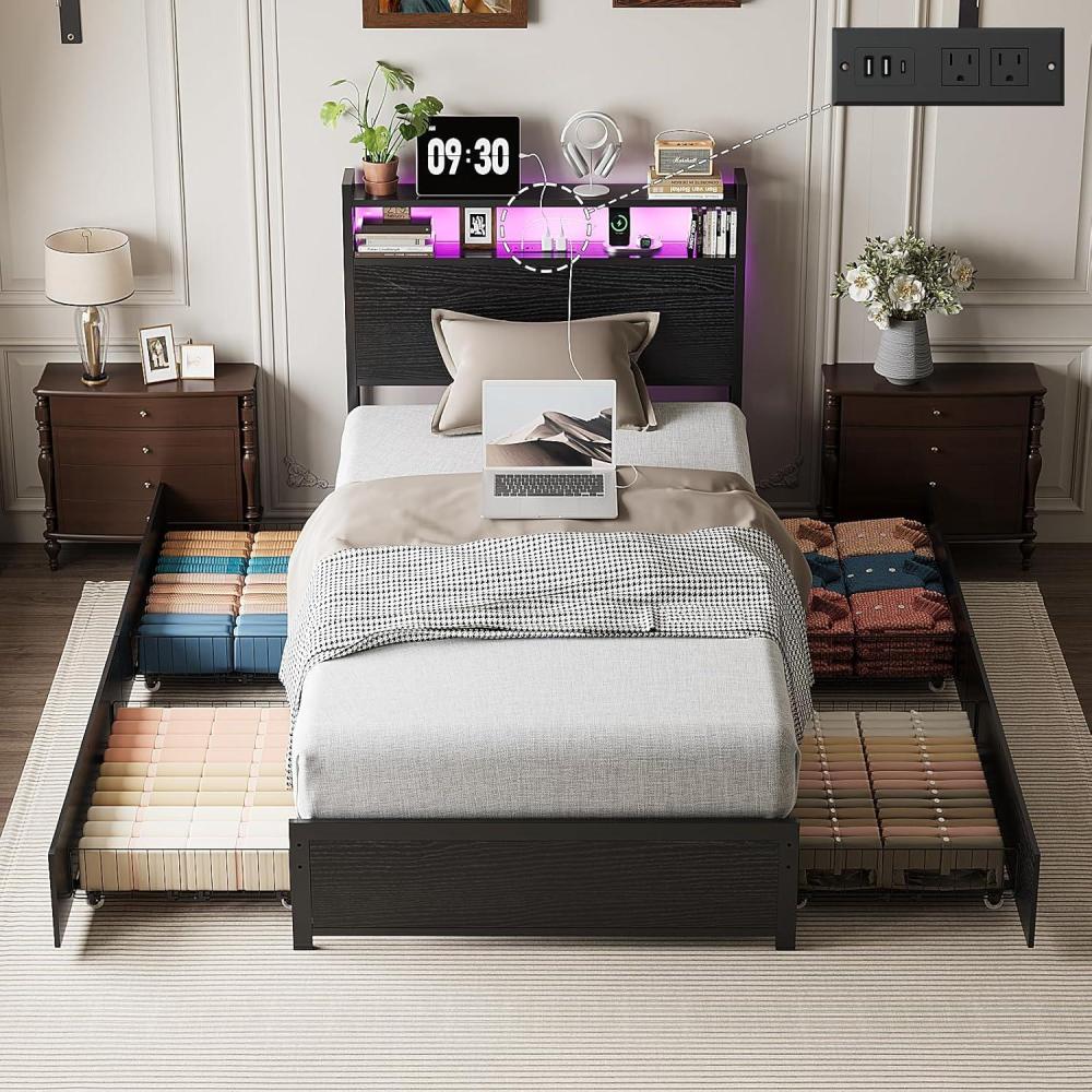 Be the first to review “VINGLI Queen Bed Frame with 4 Storage Drawers and Headboard, Metal Platform Bed with Charging Station and RGB LED Lights, No Box Spring Needed, Noise Free, Easy Assembly, Vintage Brown(Black)”