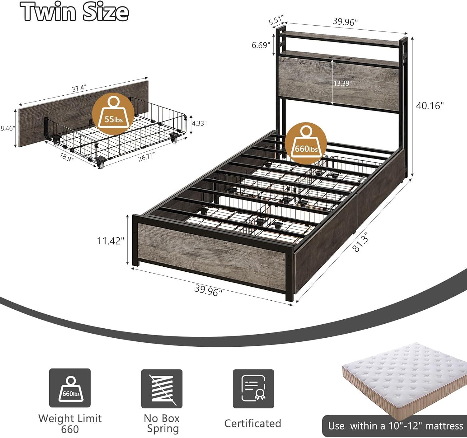 Be the first to review “VINGLI Queen Bed Frame with 4 Storage Drawers and Headboard, Metal Platform Bed with Charging Station and RGB LED Lights, No Box Spring Needed, Noise Free, Easy Assembly, Vintage Brown(Wash Grey)”