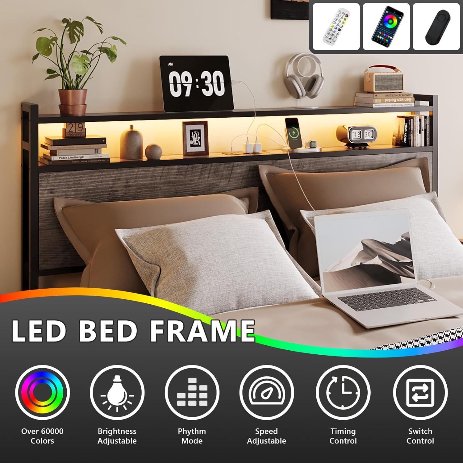 【Modern Industrial Design & Easy Assembly】 With a sleek industrial style metal headboard and minimalist frame, this queen size bed frame with storage and LED lights fits seamlessly into modern and industrial bedrooms. Clear instructions, numbered parts, and included tools allow quick and hassle-free assembly.