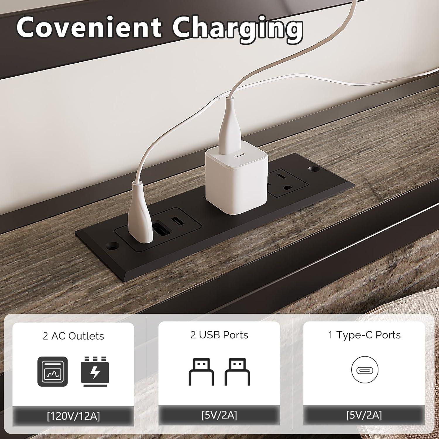 【Convenient Charging Station】 This queen metal bed frame comes with a built-in charging station on the headboard, including 2 AC outlets, 2 USB ports and 1 Type-C port. Easily charge your phone, tablet, or other devices, making it ideal for kids and teens bedrooms where study, gaming, and relaxation all happen in one space.