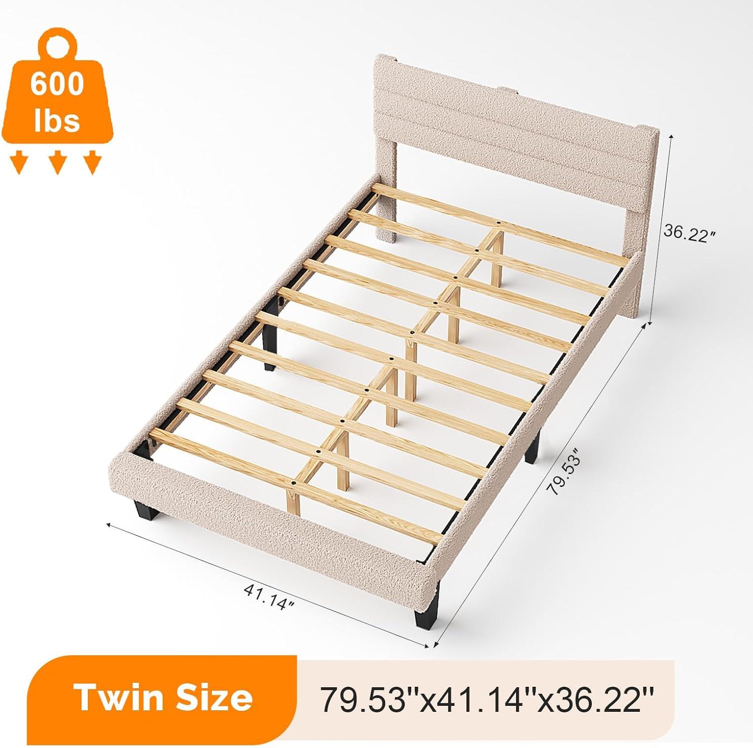 imageVINGLI Set of 2 Twin Bed Frames for KidsBoucle Upholstered Platform Bed with Adjustable HeadboardSturdy Wood Slats SupportCloud Single Bed with Cream DesignNoise Free Easy Assembly BeigeBoucle Beige
