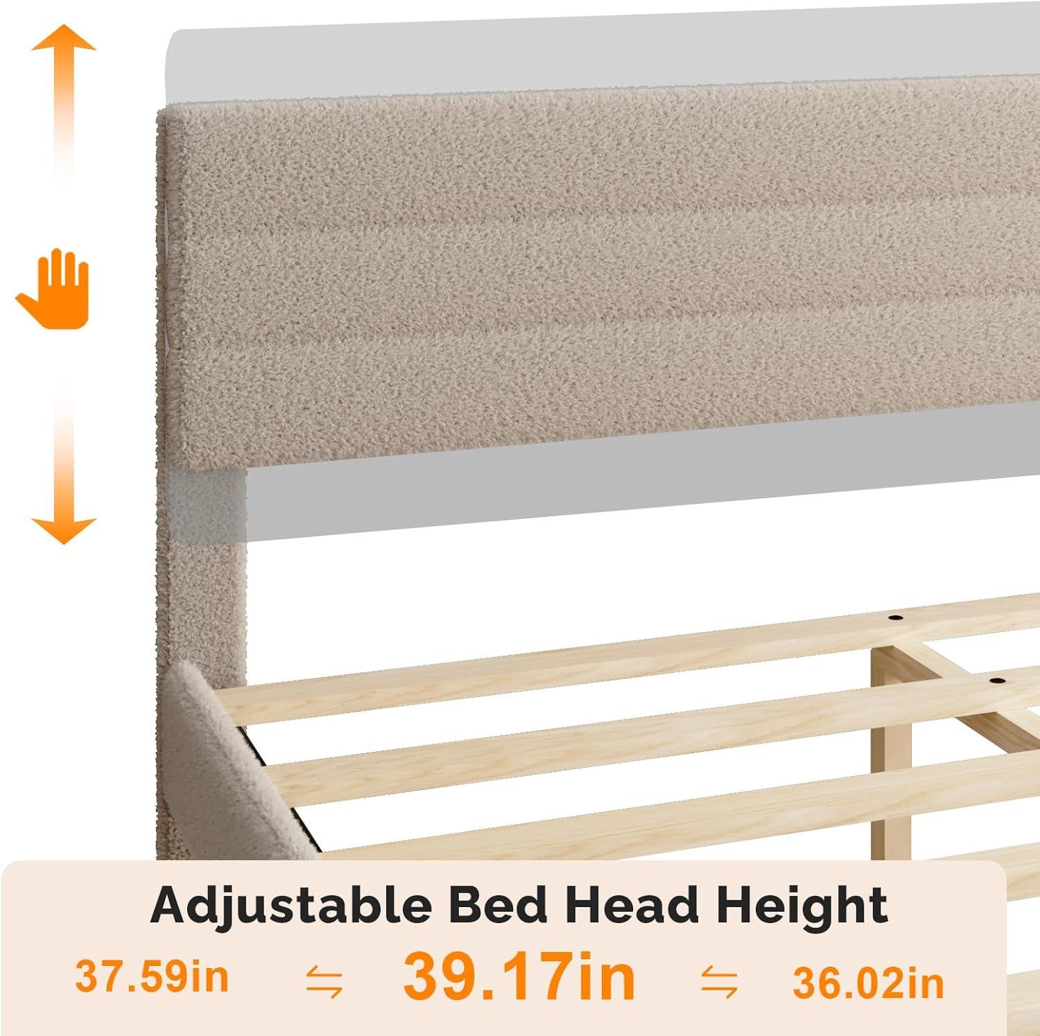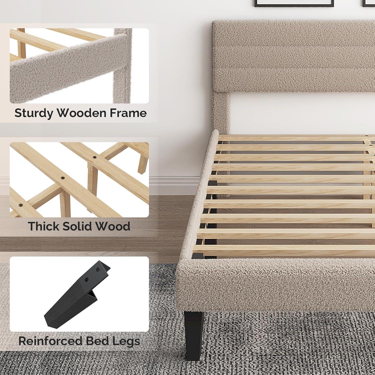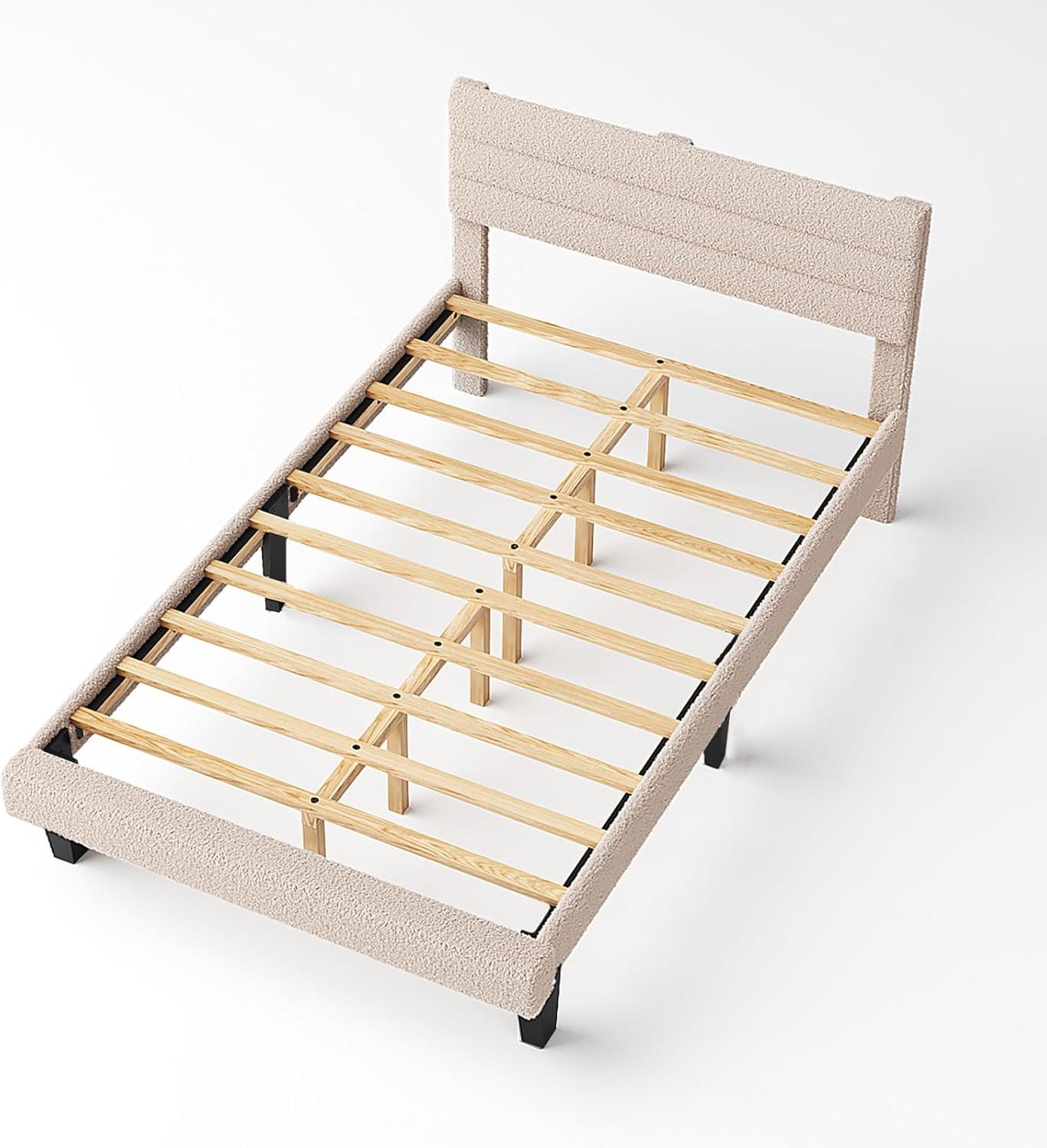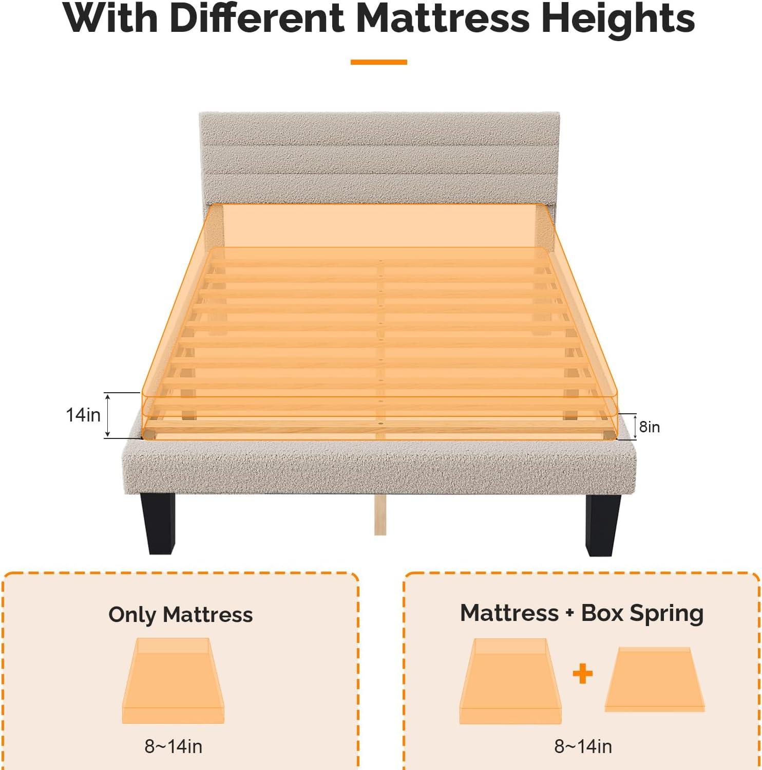 【Elegance, Modern, Simplicity】The cream boucle bed frame harmonizes modern minimalism with comfort, adapting to evolving decor. Clean lines ensure enduring style without compromising cozy sophistication.