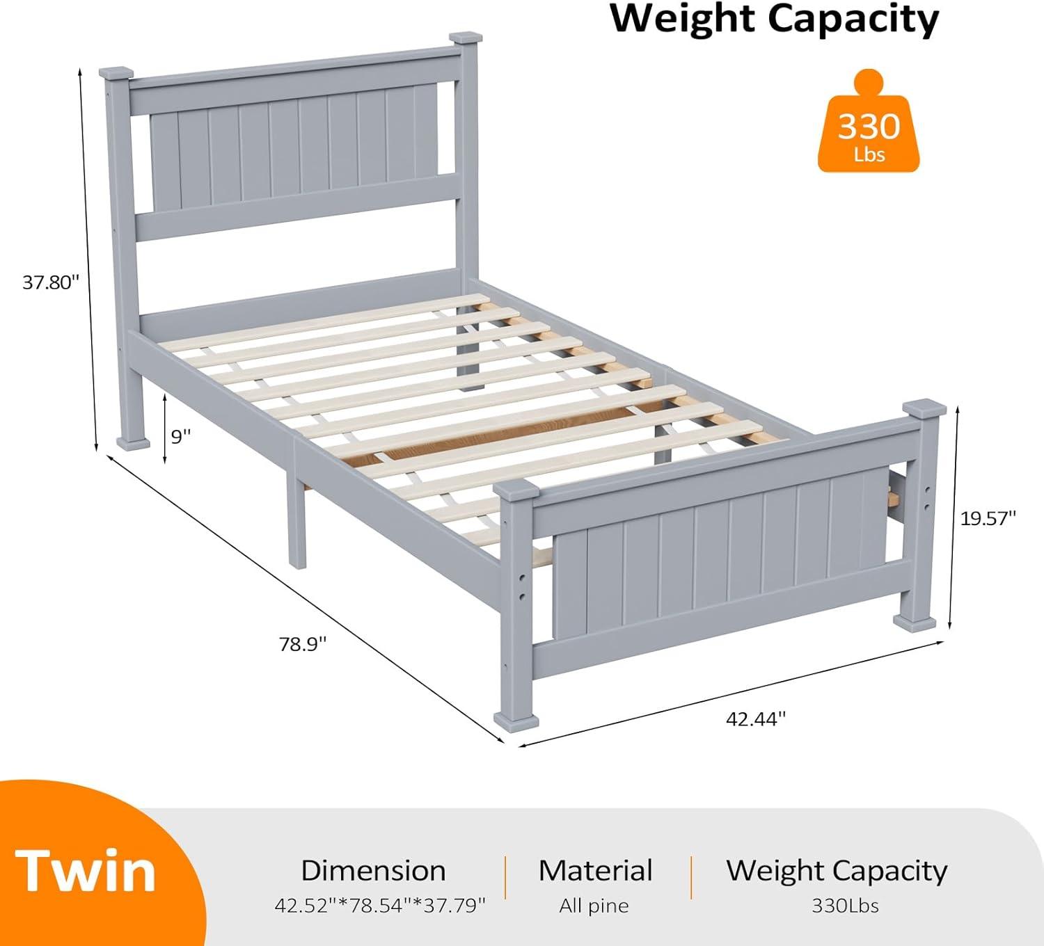 Be the first to review “VINGLI Twin Bed Frame Solid Wood Platform Single Bed with Headboard, No Box Spring Needed Panel Bed, Wood Slat Support Mattress Foundation, Gray(Grey)”